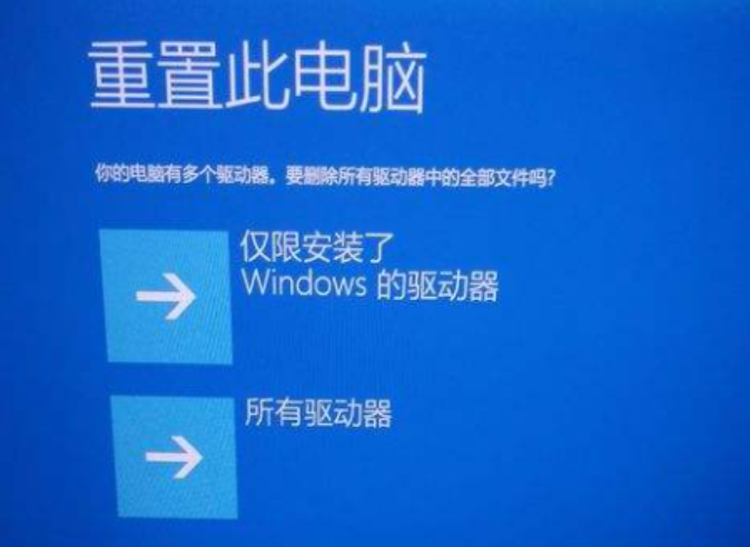 6、然后接下來在重置此電腦界面下,大家要選擇“僅限安裝了Windows的驅動器”。