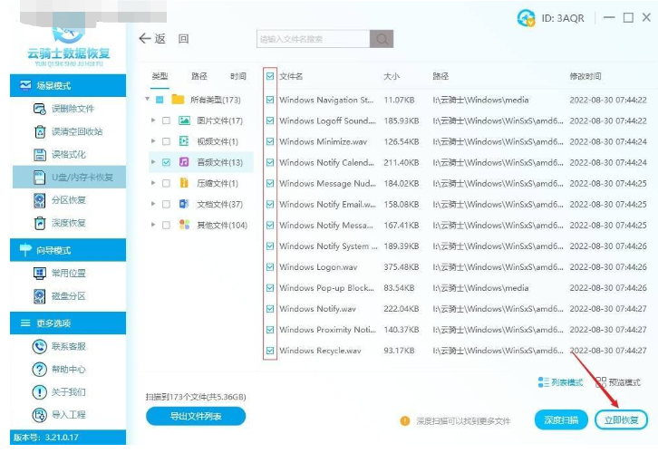 2、使用云騎士數據恢復工具進行恢復。