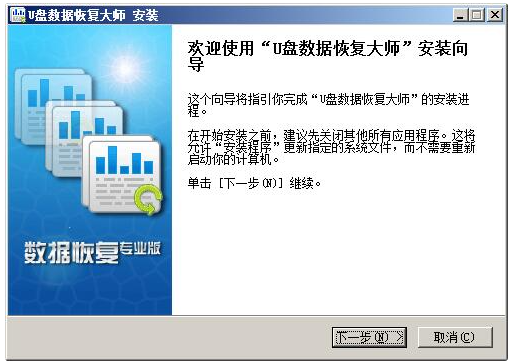 1、我們需要在網上查找并下載u盤數據恢復大師破解版安裝包,解壓安裝包打開后,找到其中帶有“.exe”文件雙擊進入到安裝向導界面。
