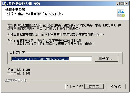 2、建議自定義軟件安裝目錄,如果是默認的就是安裝到“C:Program Files (x86)OkDataRecovery”,確認好后點擊安裝。