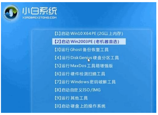 4、我們在重啟電腦的時候選擇U盤啟動,在進入小白系統pe系統時,可以選擇選擇第一項“啟動win10 x64PE(2G以上內存進入)”按回車鍵進入電腦系統。
