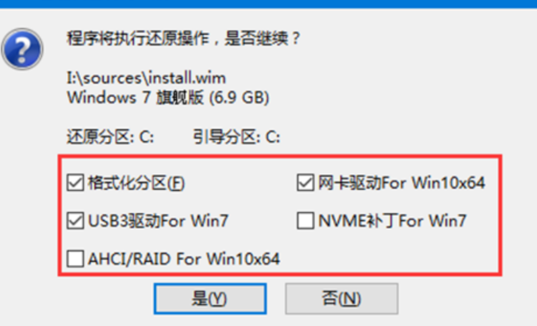 4、稍后彈出還原設置窗口,建議勾選“網卡驅動”以及“USB驅動”復選框,點擊“是”進入下一步。