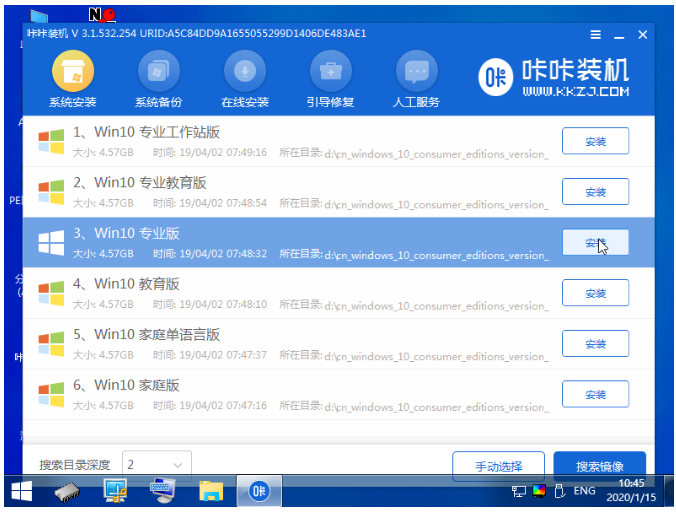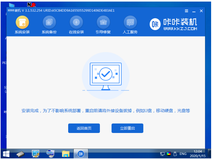 5、在pe系統桌面上點擊打開咔咔裝機工具,選擇我們需要安裝的系統點擊安裝。