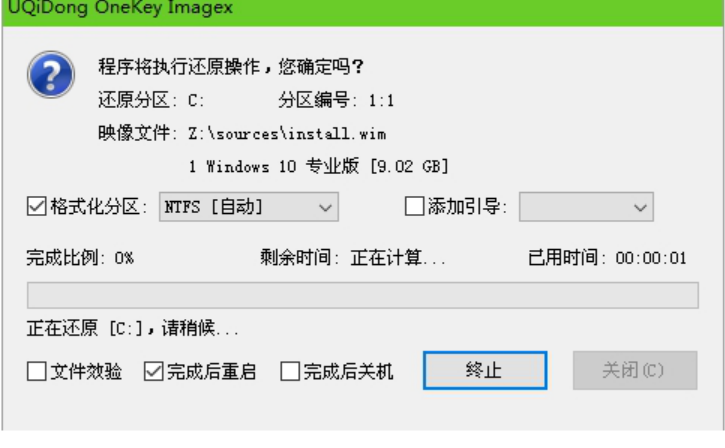 6、等待自動安裝win10pe系統,點擊重啟電腦。