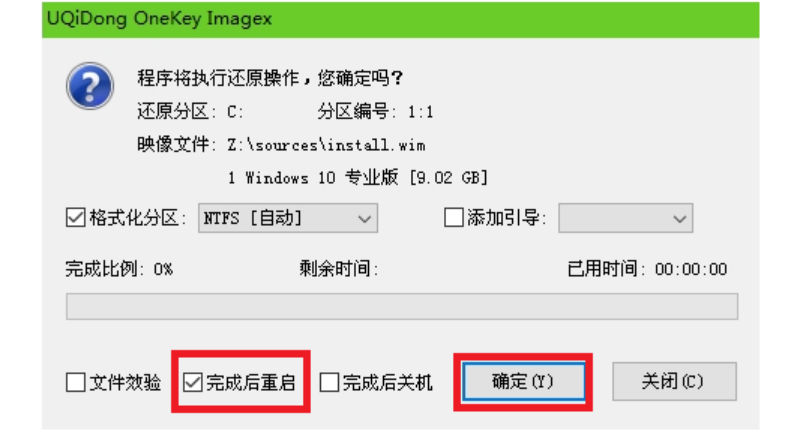 3、在彈出的窗口點擊“完成后重啟”,點擊“確定”即可。