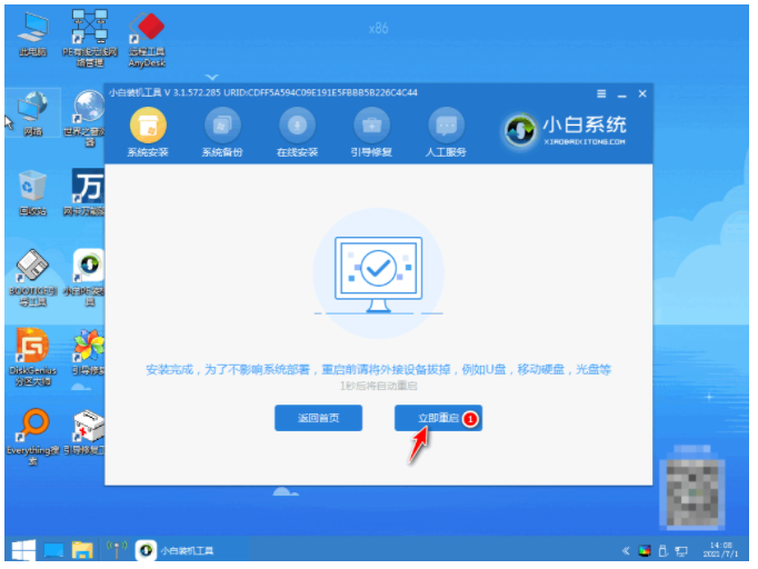 5、裝機軟件自動開始安裝,提示完成后立即重啟。