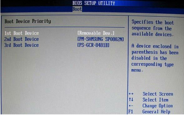2、在第一啟動設備(1st Boot Device)里選擇U盤作為啟動優先級設備。在硬盤驅動器“Hard Disk Drives”里面還沒選擇U盤為第一啟動設備,這時就不存在和顯示U盤,如上圖所示,不過我們能選擇移動設備“Removable Dev.”作為第一啟動設備。