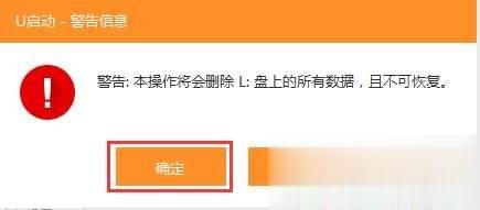 2、接著彈出警告信息窗口,確認后點擊確定按鈕,如圖: