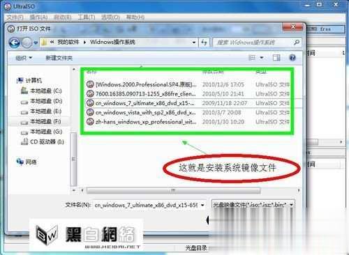 2、瀏覽到存放鏡像文件的目錄,選中該目標文件,點擊“打開”按鈕