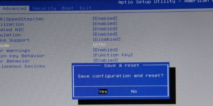 2、切換到Advanced選項,找到SATA MODE,選擇ATA;