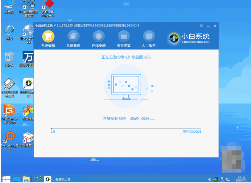 來到pe系統桌面,打開小白裝機工具,選擇需要的系統點擊安裝到c盤。