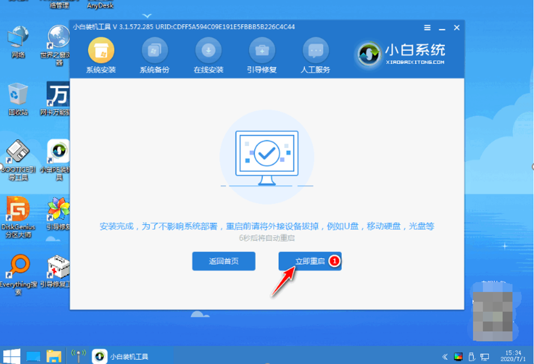 8、完成后選擇重啟電腦,注意及時拔出U盤,耐心等待電腦成功進入系統桌面即重裝完成。