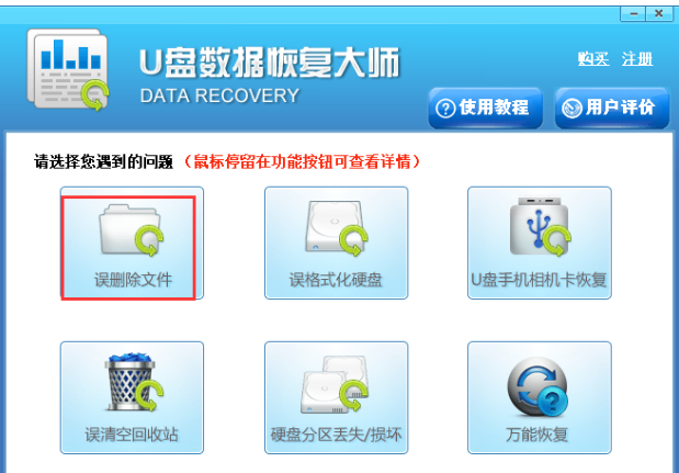 1、首先打開U盤數據恢復大師軟件,然后在界面中點擊“誤刪除文件”選項,進入下一步。