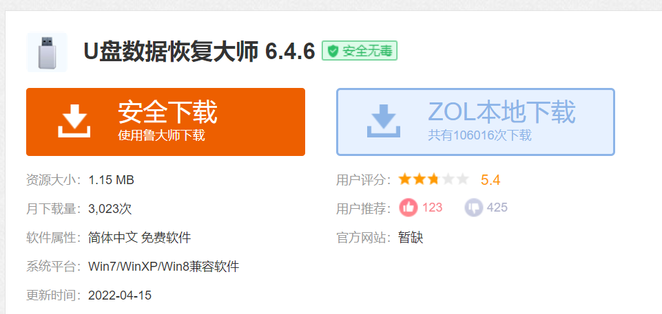 軟件版本:u盤數據信息恢復大師破解版v6.4.6