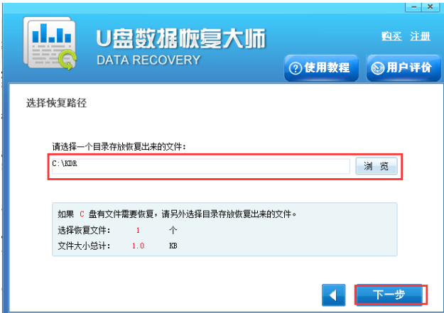 5、進入到數據恢復路徑選擇界面,需要選擇合適的恢復路徑,點擊下一步等待恢復完成就可以使用了。