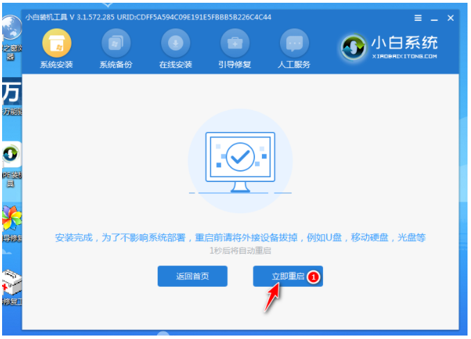 7、當提示系統安裝完成之后,點擊立即重啟選項。