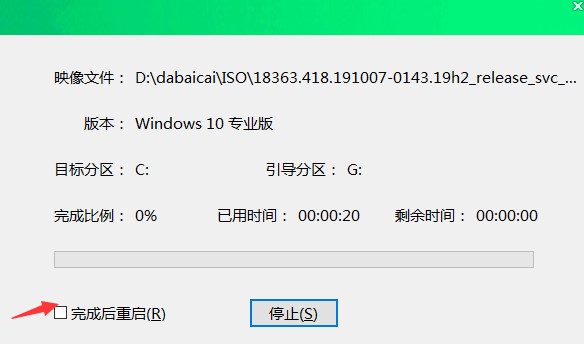 3、選擇完成后重啟,等待win10系統安裝部署到C盤完畢。