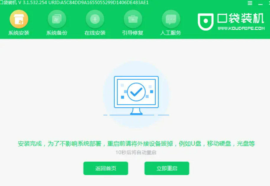4、系統安裝完之后,點擊立即重啟電腦。