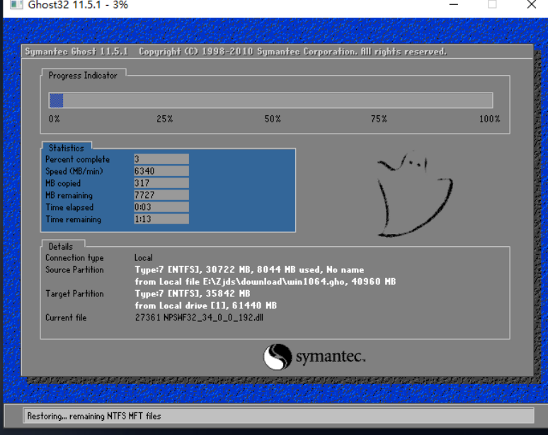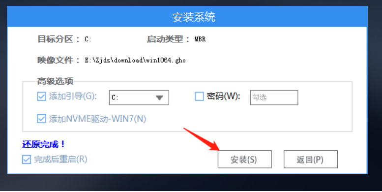 9、重啟后,系統將自動進入系統安裝界面即成功。