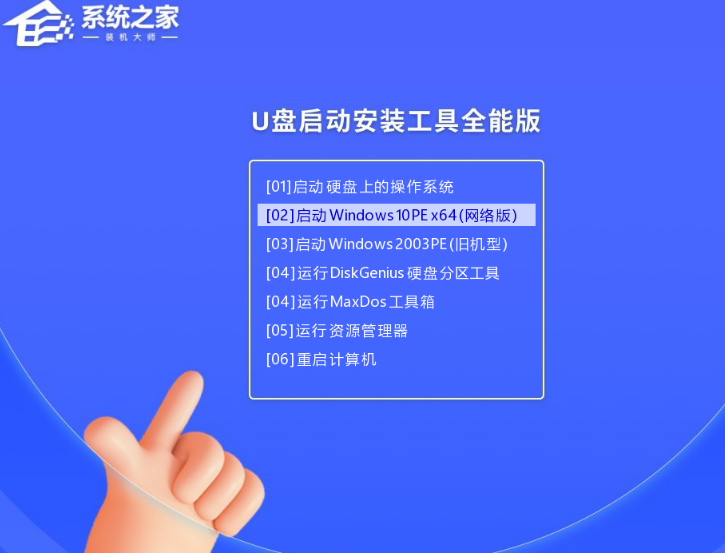 2、U盤插入電腦,重啟電腦按F12快捷鍵選擇U盤進行啟動。選擇第二個[02]啟動Windows10PEx64(網絡版),然后回車。