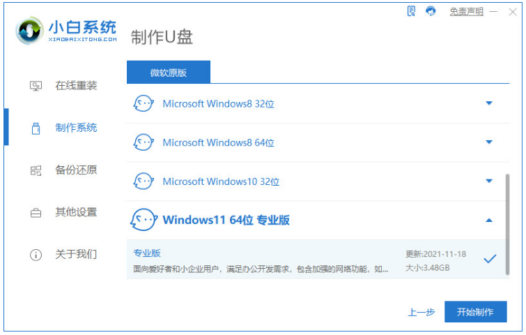 2.選擇我們需要的win11系統,點擊“開始制作”。