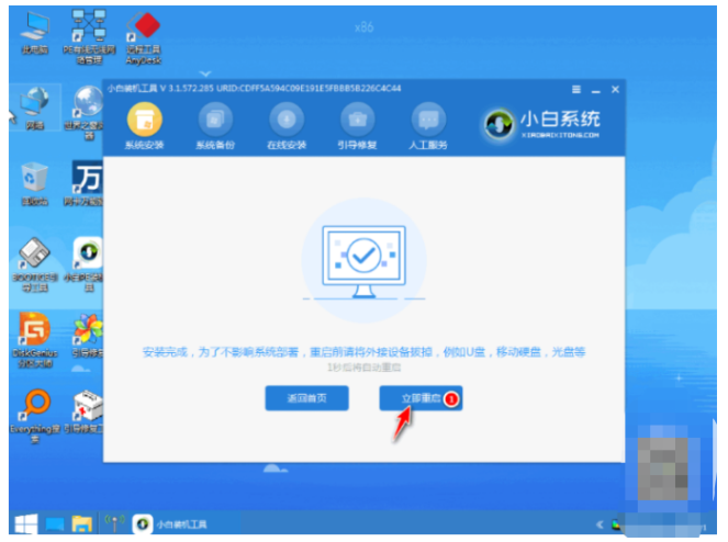 8.當系統安裝完成時,拔掉u盤,點擊“立即重啟”。