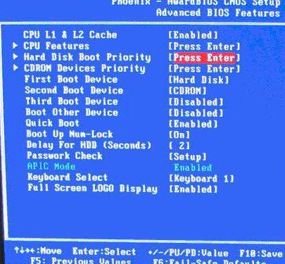 2.高級BIOS設置(Advanced BIOS Features)的界面,我們選擇硬盤啟動優先級:Hard Disk Boot Priority