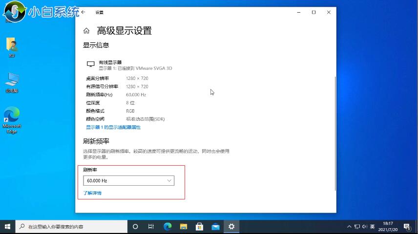 5、也可以在顯示適配器屬性中,在此處設置合適的屏幕刷新率即可。