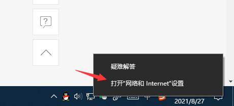 右擊無線網絡圖標,點擊Internet設置;
