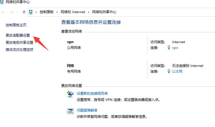 點擊“更改適配器設置”