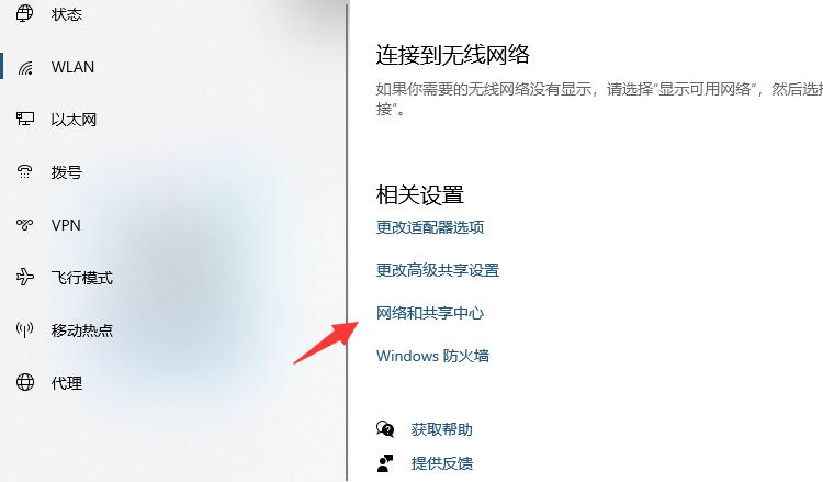 點擊wlan后,點擊“打開網絡和共享中心”
