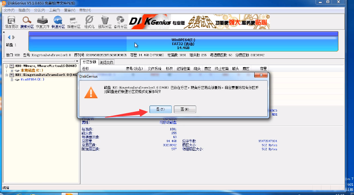 4.然后會彈出提示分區會刪除u盤所有數據,沒有重要數據的話,我們直接點擊“是”。