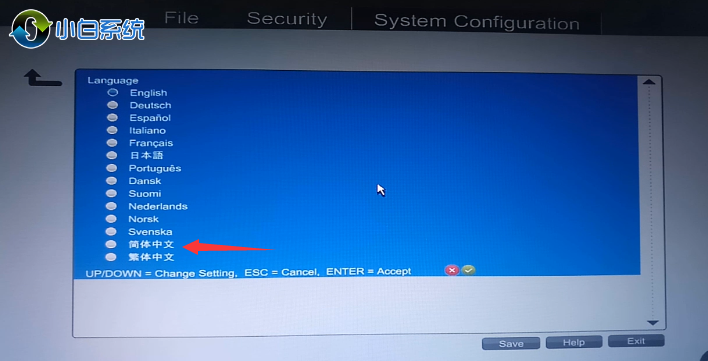 1.首先我們開機不停按F10進入到BIOS設置中,不同電腦進入BIOS設置的方法不同,進入到頁面我們將語言改成簡體中文模式。