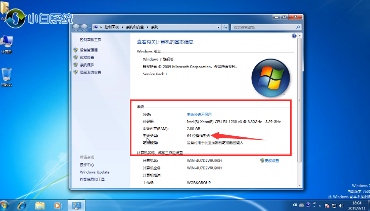 2.在電腦屬性頁面,下方找到系統那一欄,可以看見我們的系統是64位。
