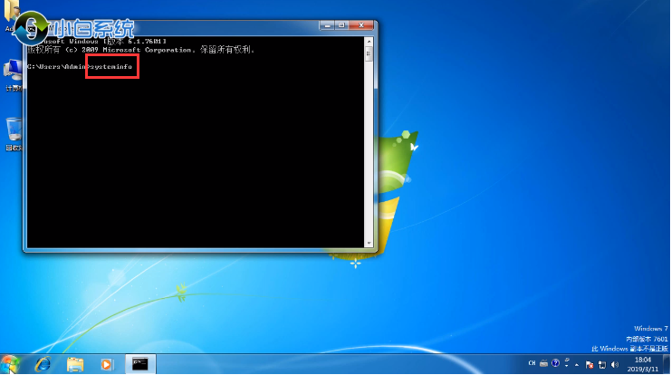 2.進入到命令提示符頁面,我們輸入命令'systeminfo"回車確認。