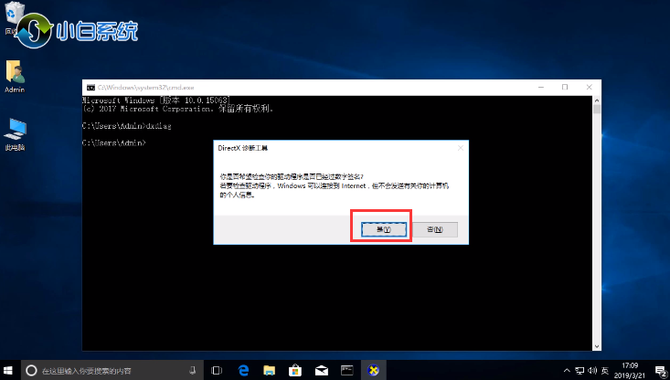 2.進入到命令提示符頁面,我們輸入命令”dxdlag"回車確認。