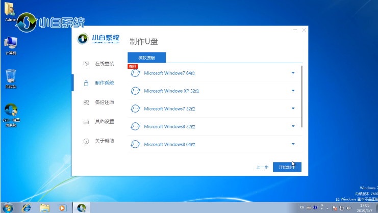 2.進入頁面我們選擇需要制作的系統,點擊“開始制作”。