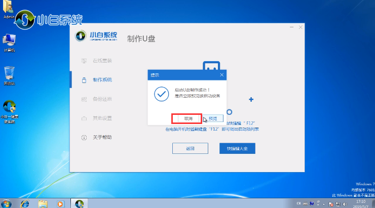 3.開始制作系統鏡像文件及pe系統,制作完成后我們點擊“取消”即可。