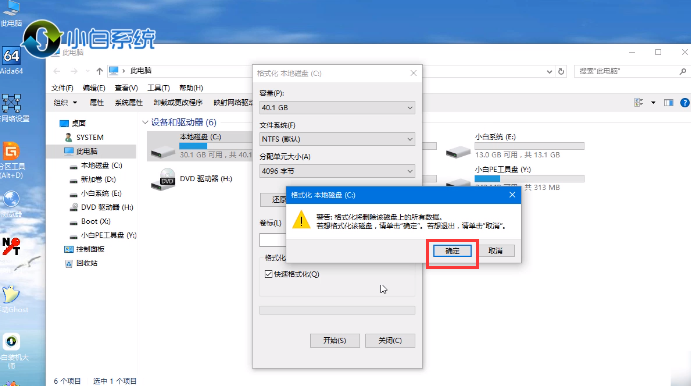 8.進入桌面后,我們將c盤格式化,點擊”確定“。