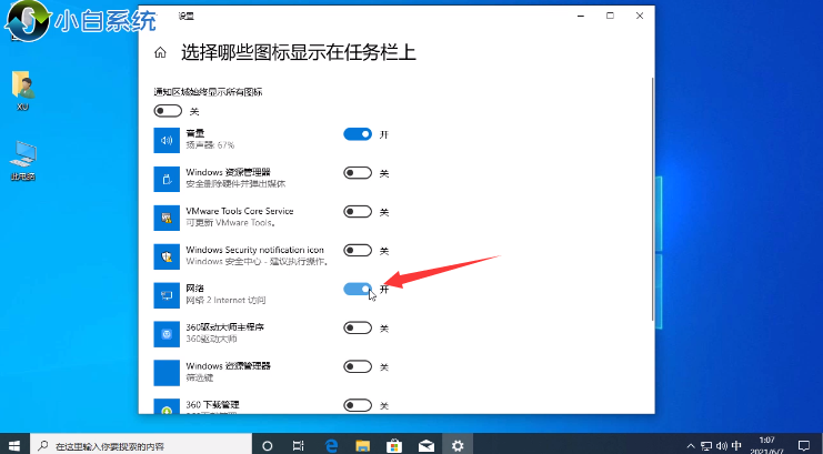 3.進入頁面后,我們在左側找到"任務欄"選項,右側下拉找到“選擇哪些圖標顯示在任務欄上”按鈕。