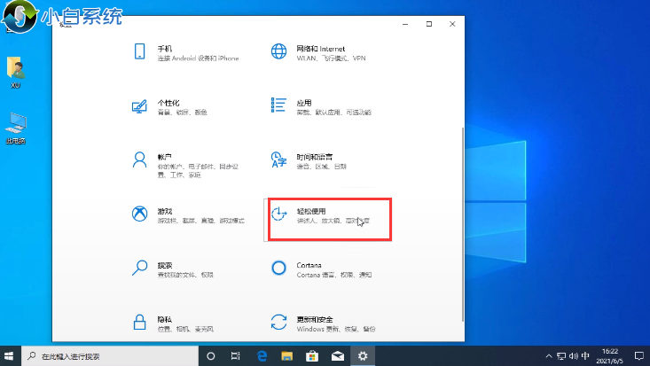 2.在設置頁面中,我們下拉找到”輕松使用“功能。