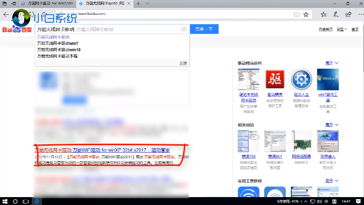 1.首先我們在網上下載驅動工具,打開瀏覽器搜索“萬能無線網卡驅動”。