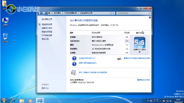 4.當我們計算機分級完成后,就能看見計算機的相關配置信息及分級了。