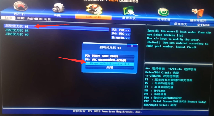 3.選擇啟動優先項#1回車,在打開的窗口中選我們的u盤名稱。