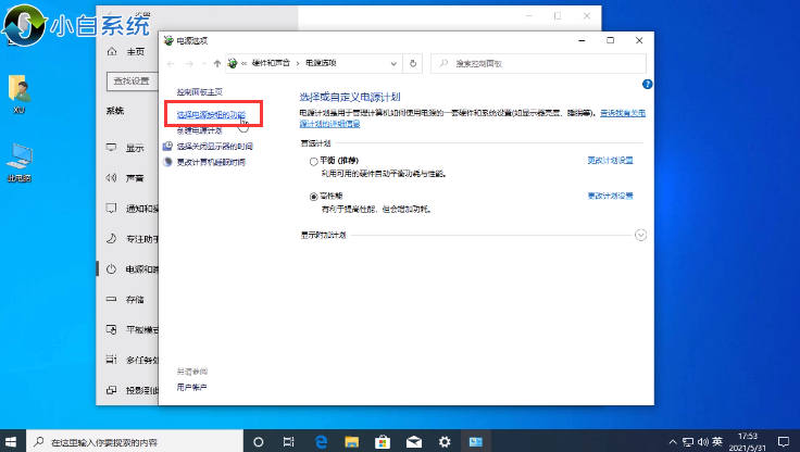 4.在彈出的窗口中點擊左側的“選擇電源按鈕的功能”。
