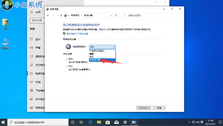 5.進入頁面,我們在電源按鈕設置的下方,打開選項卡選擇“關閉顯示器”即可。