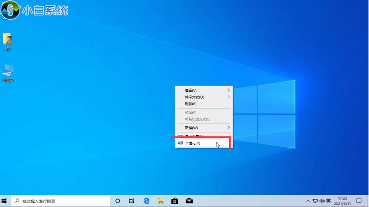 1.首先我們鼠標右鍵在桌面上打開“個性化”選項。