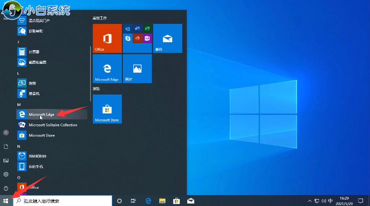 1.首先我們點擊左下角的開始菜單,在其中找到”microsoft edge“點擊打開。
