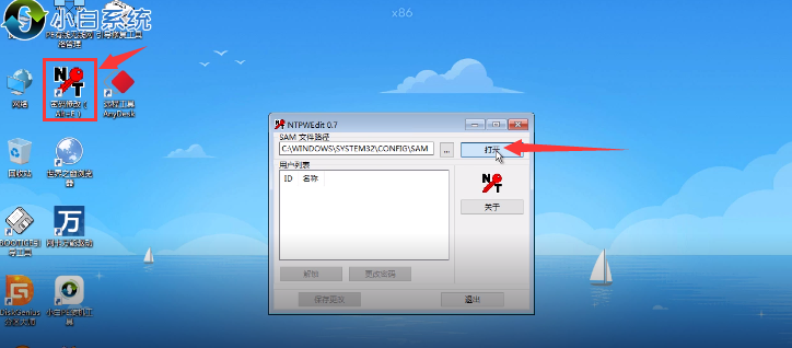 3.我們將重啟電腦,重啟電腦時快速按啟動熱鍵,選擇自己的u盤為第一啟動項進入到u盤的pe系統中,點擊桌面上的密碼修改工具并點擊“打開”選項。