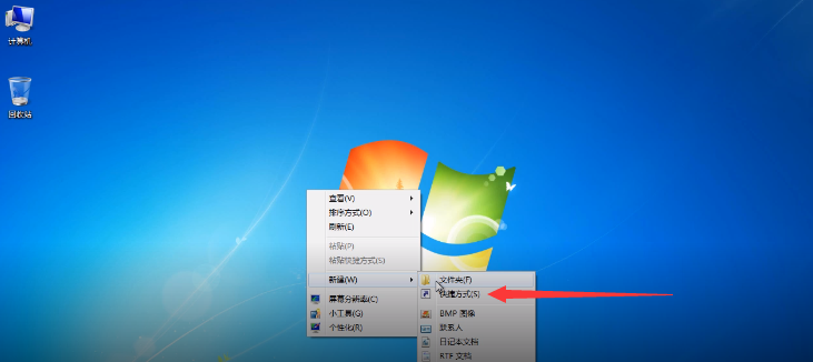 1.我們在桌面上右鍵選擇新建,創建一個快捷方式。